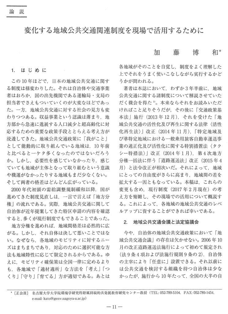 変化する地域公共交通関連制度を現場で活用するために