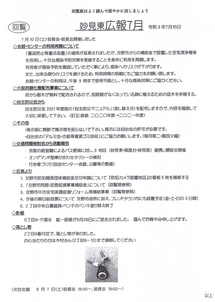 妙見東広報と回覧 令和3年7月15日 2021.07.152022.09.13 目次 映画会のお知らせ 7月28日(水曜日)午後1時開場交番だより 令和3年7月号交野市 同居・近居 促進事業補助金について交野市 中古住宅の購入やリフォームなどの補助金について 映画会のお知らせ 7月28日(水曜日)午後1時開場 交番だより 令和3年7月号 交野市 同居・近居 促進事業補助金について 交野市 中古住宅の購入やリフォームなどの補助金について