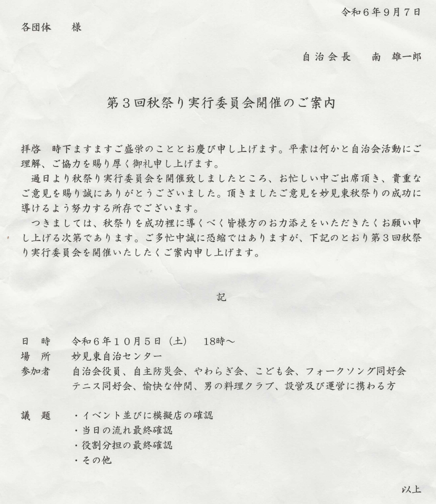 第3回秋祭り実行委員会開催のご案内