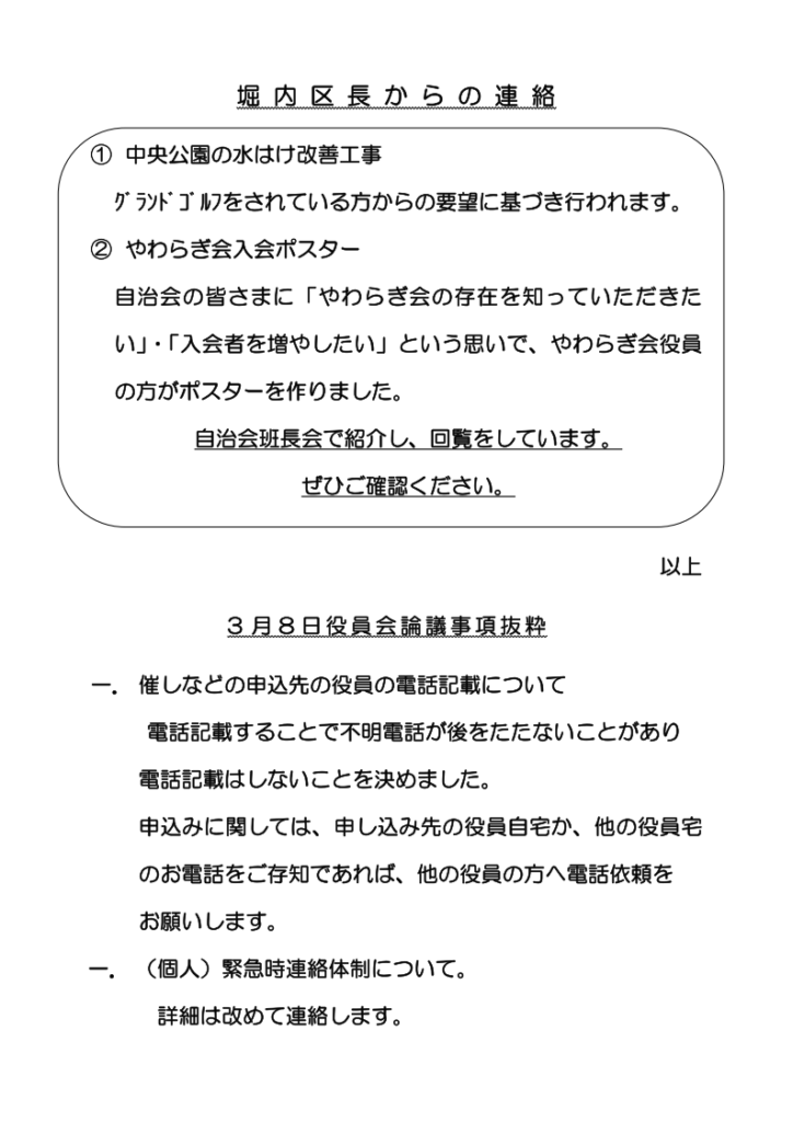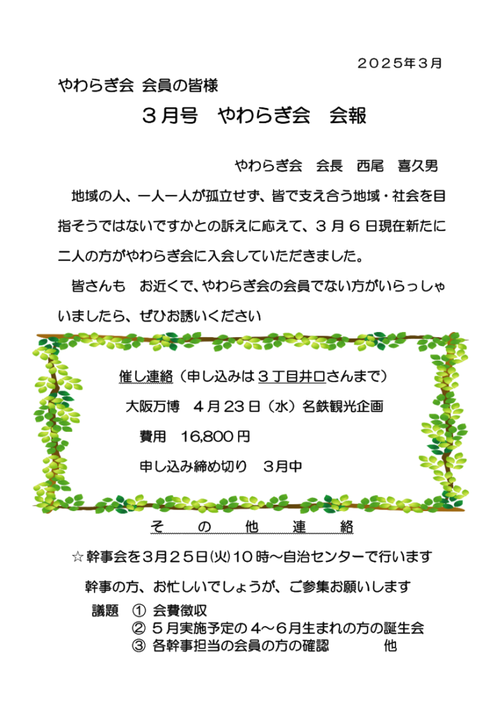 やわらぎ会(会報)3月号