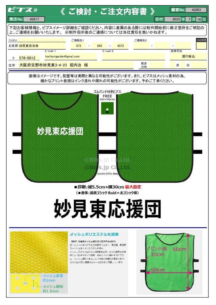 妙見東応援団 ネーム入りチョッキ 2025/8 2025.08.102026.01.08 お知らせです。団員のユニフォームを発注しました。写真のキャップは既に100個入荷しました。 届き次第団員全員に配布します。諸活動時に着用ください。