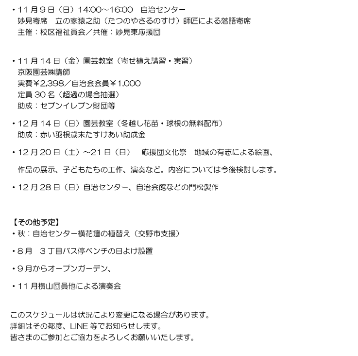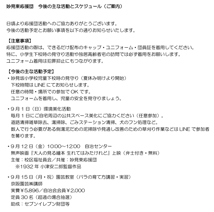 妙見東応援団 活動予定2025/8