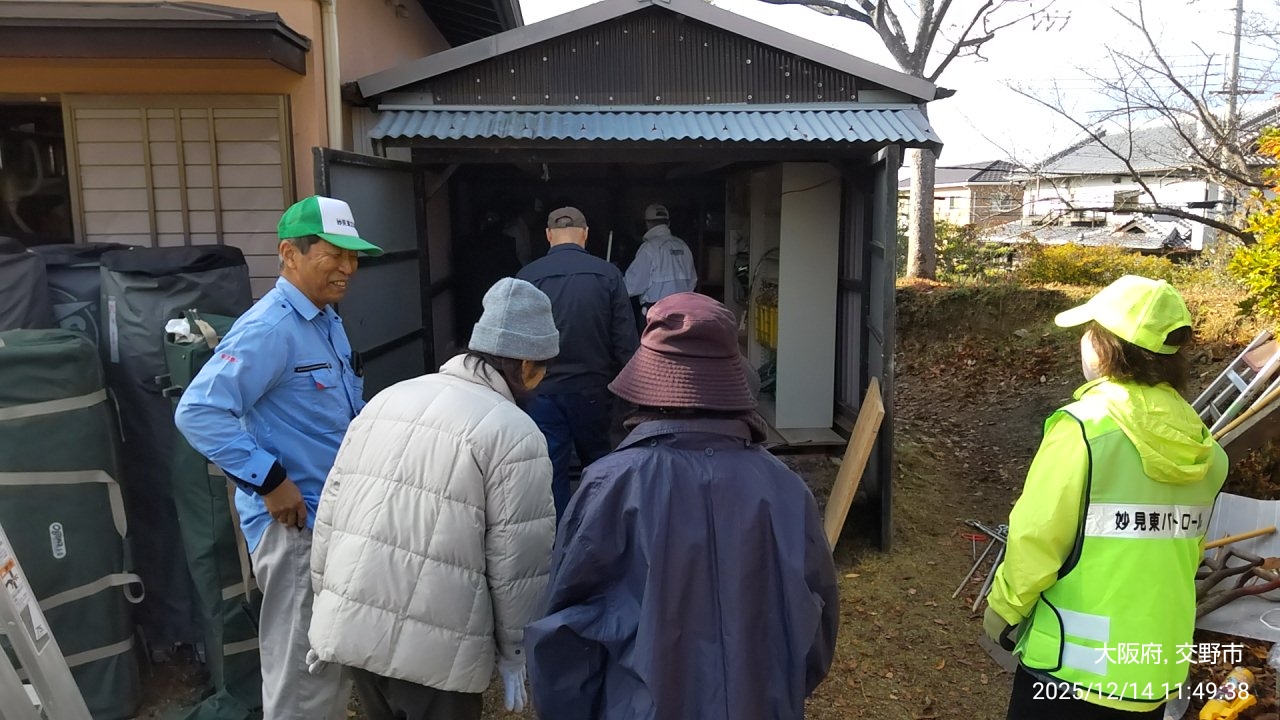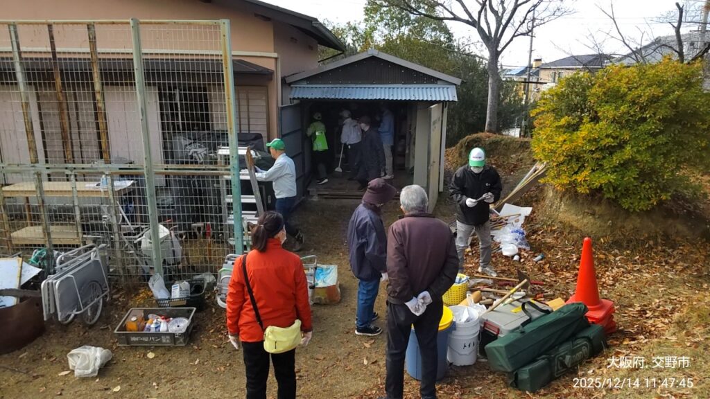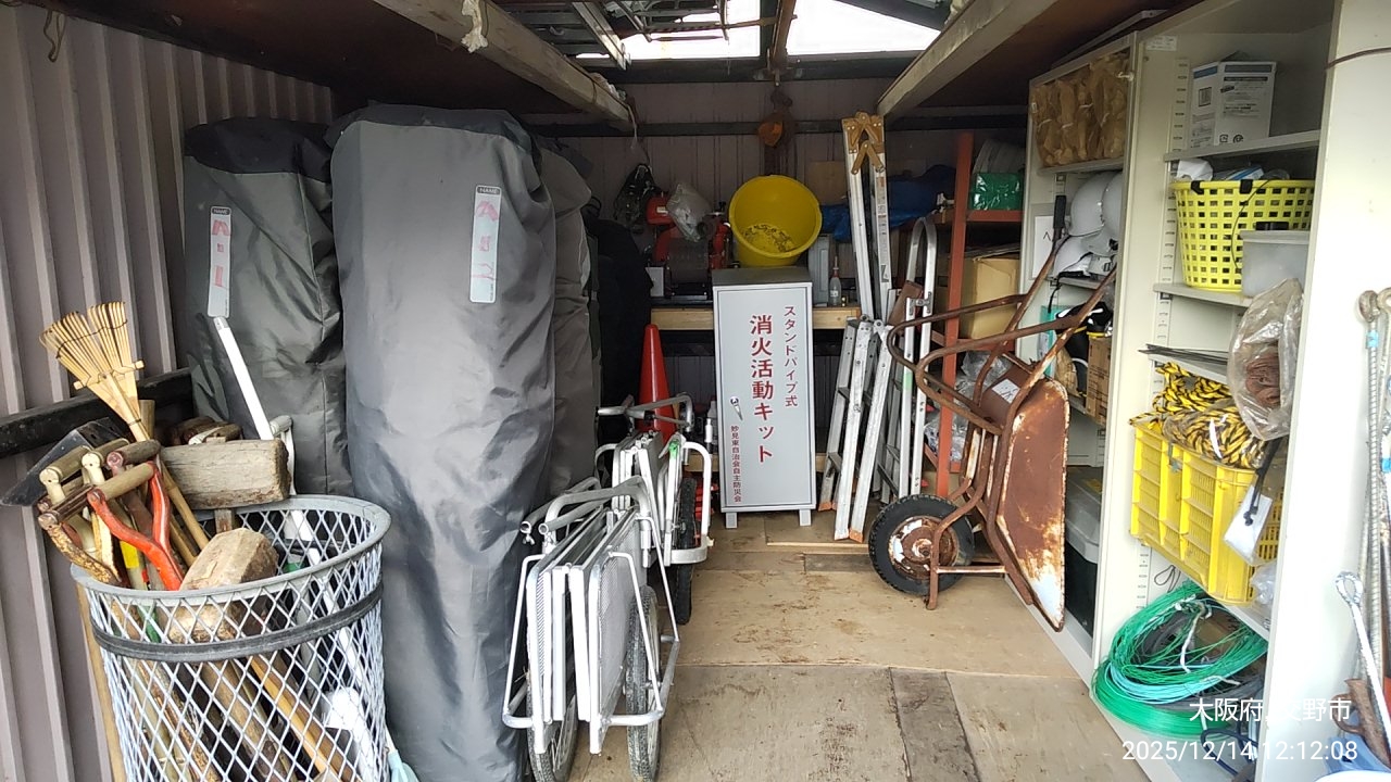 防災倉庫&環境倉庫 大掃除 2025/12/14 2025.12.142026.01.05 防災倉庫、環境倉庫周りの年末整理、お疲れ様でした。すっかり綺麗に、また、いざという時に使い易くなりました。ありがとうございました。自治会会長、環境委員、防犯防災委員長他の自治会関係者と一緒に片付けました。その他、下中さん、中島さん、久保さん他の方々も応援頂きました。