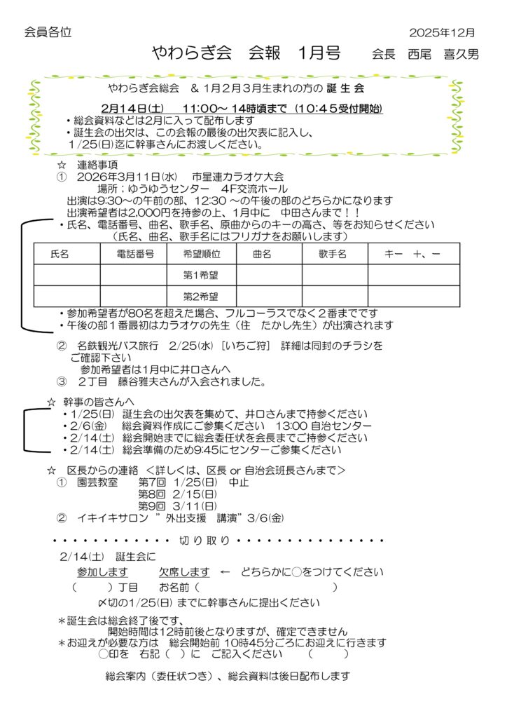 やわらぎ会(会報)令和8年1月号