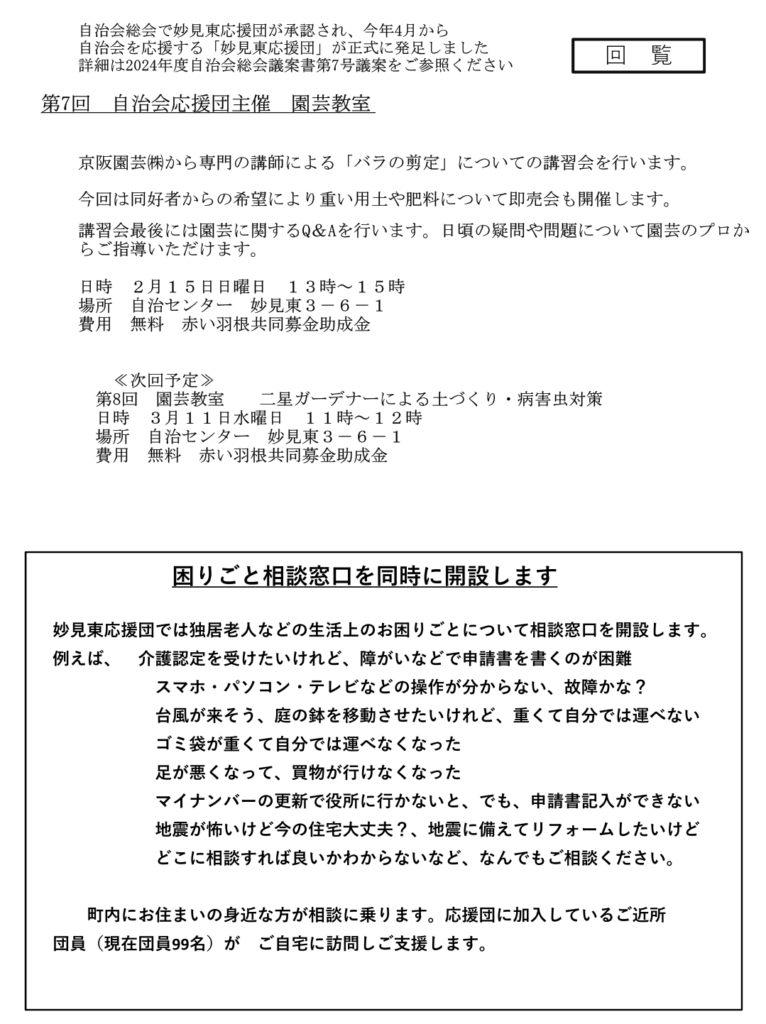 合わせて団員から要望がありました重い用土や肥料などの即時販売を行ないました。