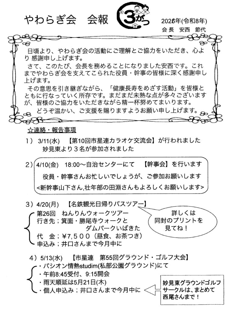 やわらぎ会(会報)令和8年3月号